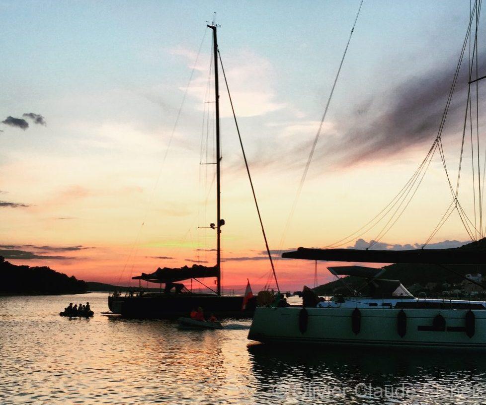 Leider ist der Wind insgesamt sehr schwach. Daher gehen wir zum Abend an eine Boje in der Bucht von Kaprije. Das ist auch ein Manöver, dass Mike auch zum ersten mal fahren soll. Da ist Fingerspitzengefühl gefragt. Um uns herum auf knappen Raum große beeindruckende Jachten und Hafenkino. Will nicht zur Attaktion werden und bespreche wieder mit allen die Aufgaben und den Ablauf.