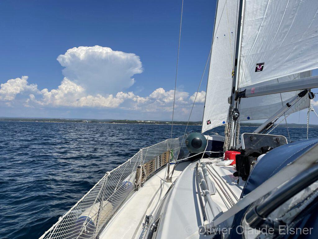 Der Segeltag war easy. Leichtes Ablege-Manöver mit seitlich auflandigen Wind. Kein Problem, sowas kann ich noch. Bei geringer Marschfahrt den Hafen verlassen, raus auf die Adria. Gut Raum zur Küste gelassen und mit einem gemütlichen Raumschotkurs nach Süden. Nichts zu tun für uns, wir sitzen einfach hier. Unterwegs eine Rettungsweste im Wasser gesichtet. Kann nicht erkennen, ob da auch was drin ist. Daher ‚Man Over Board‘ Manöver unter Segeln eingeleitet. Haben zwei Anläufe gebraucht, die Rettungsweste zu fassen bekommen. Es steckt kein Mensch drin. Was für ein Glück. Um etwa 16:00 Uhr werfen wir Anker in der Bucht bei Fontana. Hier werden wir über Nacht bleiben. Morgen verlassen wir diesen schönen aber ziemlich lauten Ort und suchen uns etwas Ruhigeres etwas weiter im Süden.
