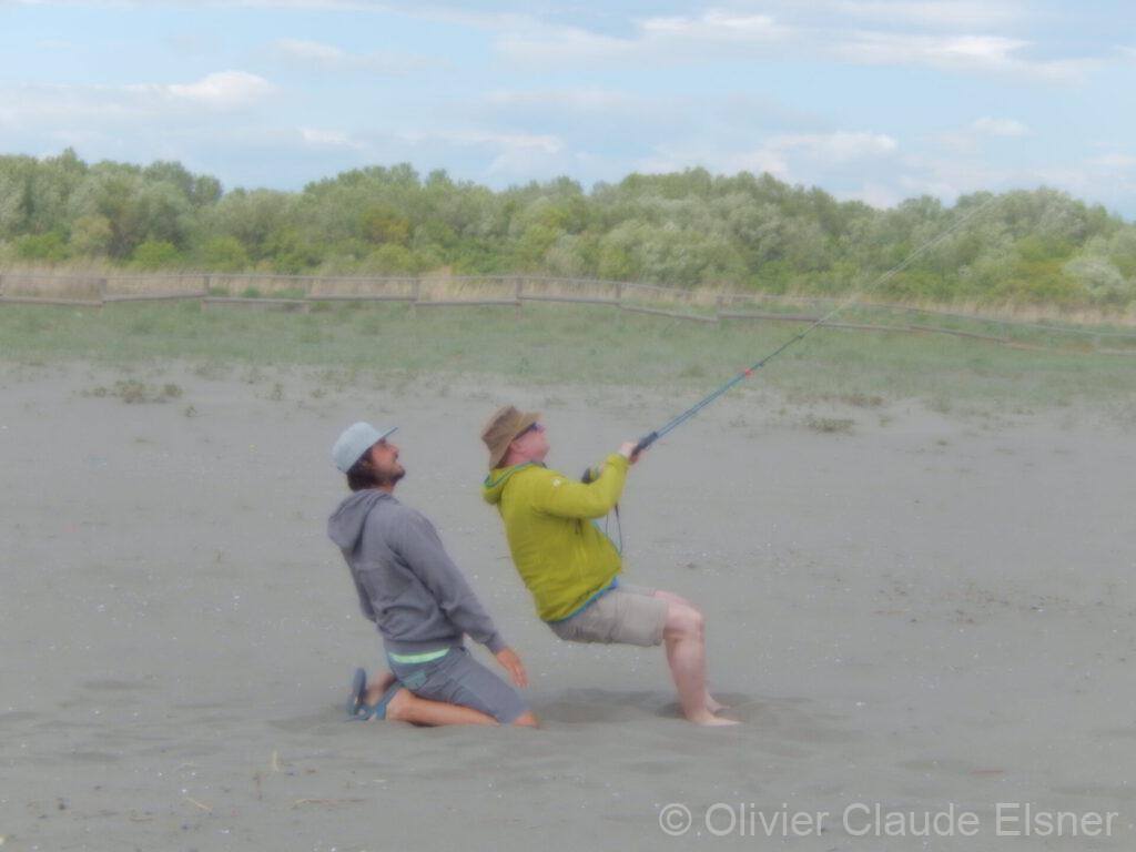 Dann ein paar Bodydragübungen und mit Kite aus dem Sitzen aufstehen. Das hat leider nicht so gut geklappt.