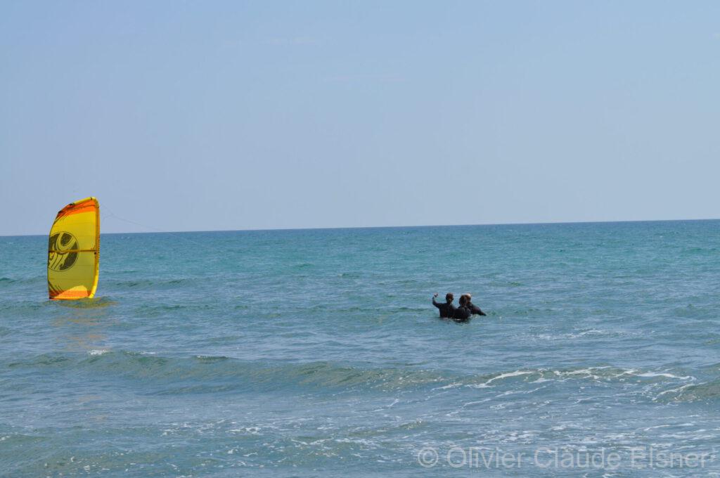 Beim Bodydrag suche ich erst mal nach Stabilität, nicht so einfach. Aber mit ein paar Versuchen kann ich sehr gut steuern und Höhe laufen. Laut Mike und Dominik würde ich so ganz sicher mein Board wieder bekommen. Diese Übungen klappen noch nicht ohne Salzwasser in Mund und Nase.